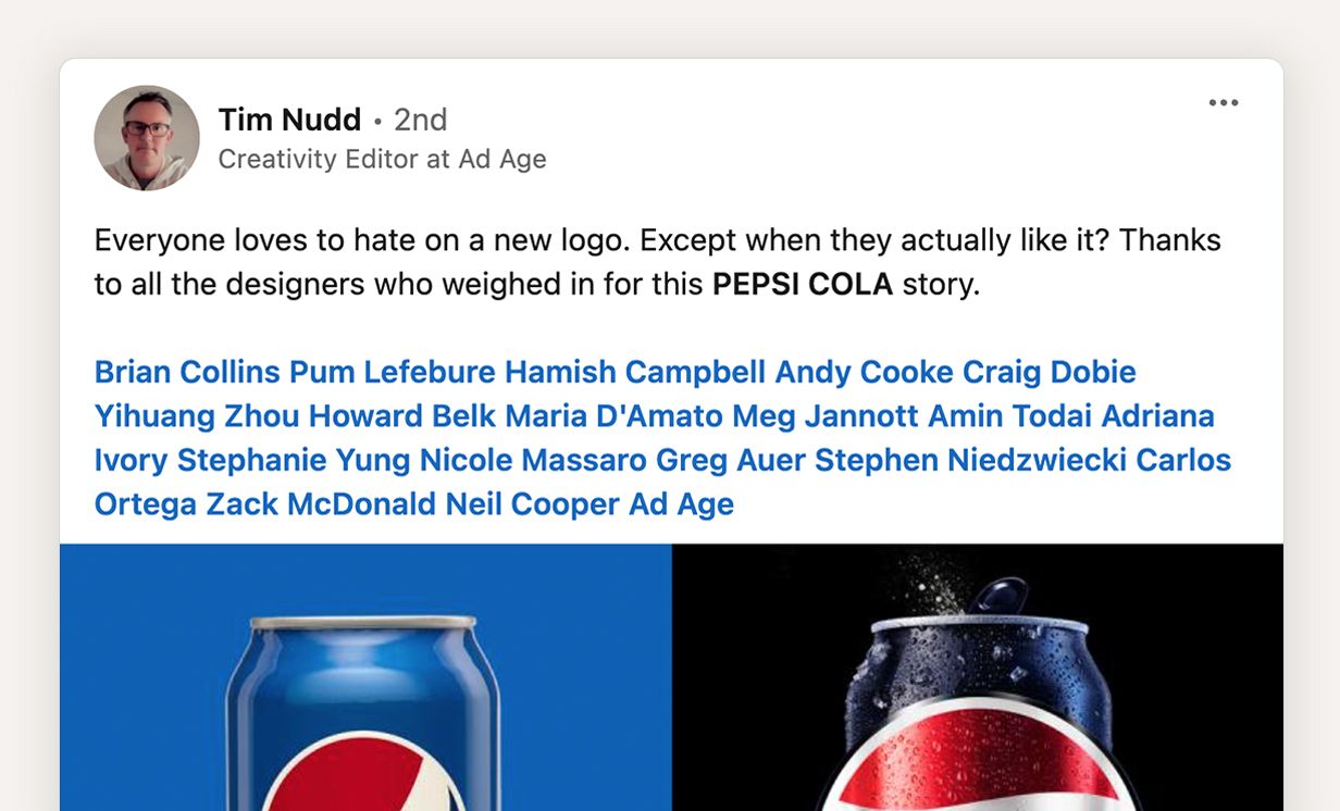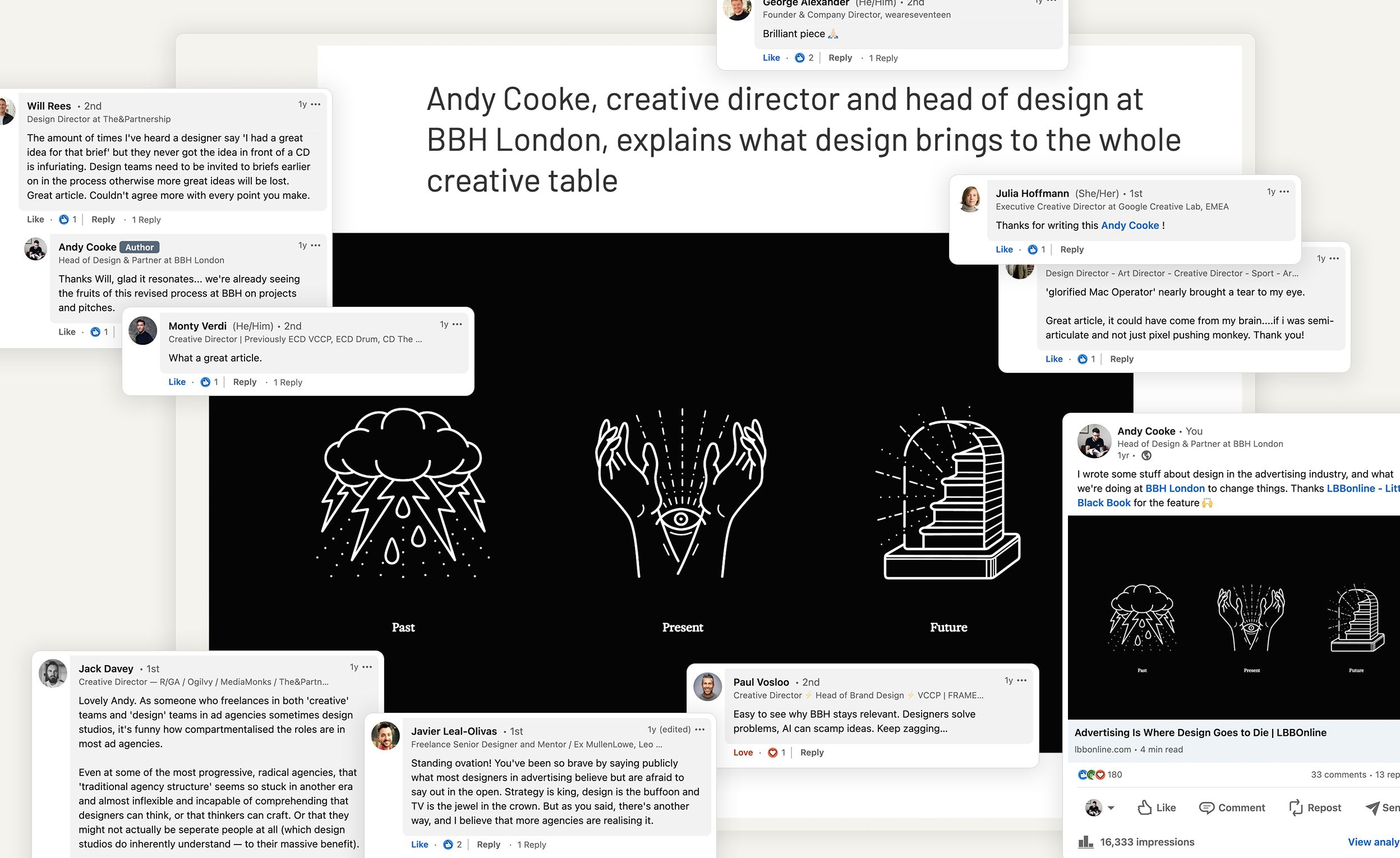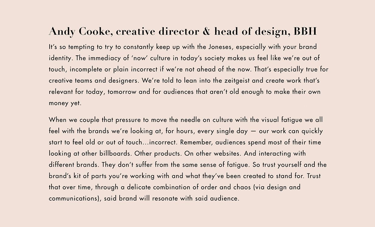 Working with the PR team within BBH, I had opportunities to contribute some thought pieces and opinions about design to various outlets of the industry press. Between Little Black Book, Creative Salon, AdAge and Creative Review, I had written pieces on topics such as slow design, romantic design and the Pepsi rebrand. I also appeared on podcasts from Unknown, The NDA Podcast and Pirated Material.