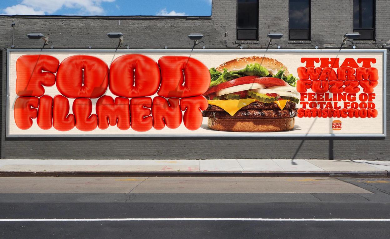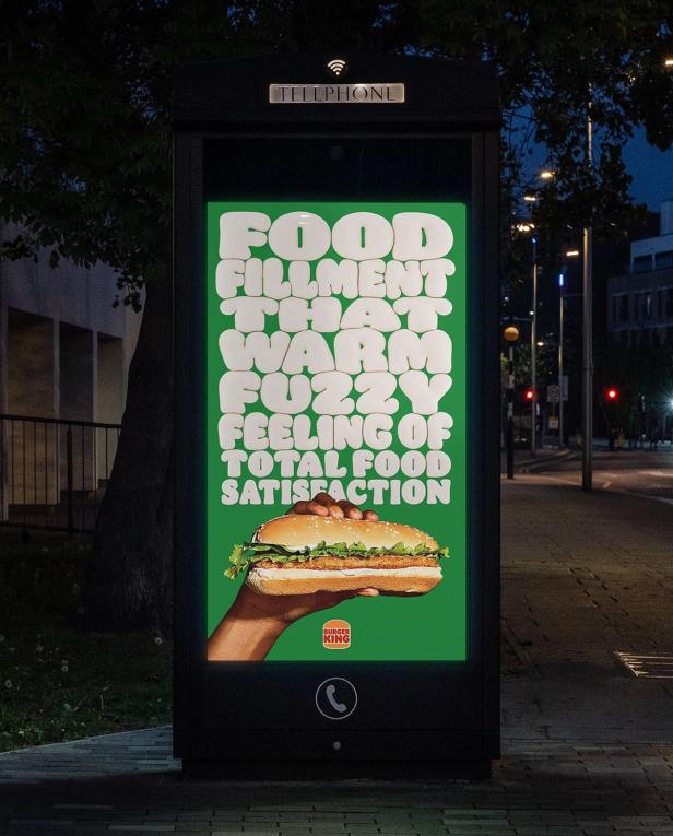 The very simple notion of defining that post-food satisfactory feeling needed an equally simple visual solution for the out of home side of the campaign. We took the playful Burger King typeface and inflated it to a warm and fuzzy kinda place that echoed the feeling of being just the right level of full.