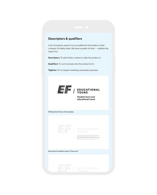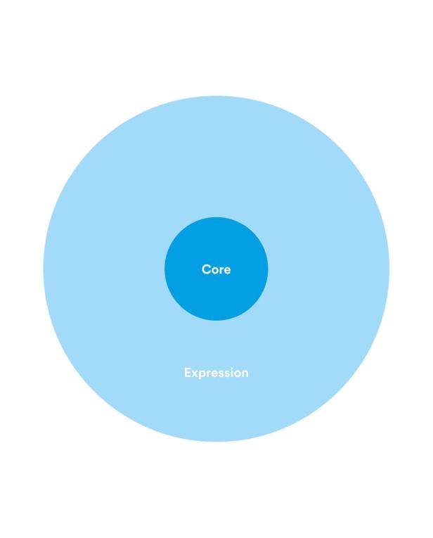 The core / expression model works to align all EF products under a set of mandatory core elements, surrounded by an expressive layer that is relevant to the individual product marketplace. As part of the guide, we created an optional set of expression elements that can be used by any product at any time. Especially useful for quick and dirty, but on-brand, designs.