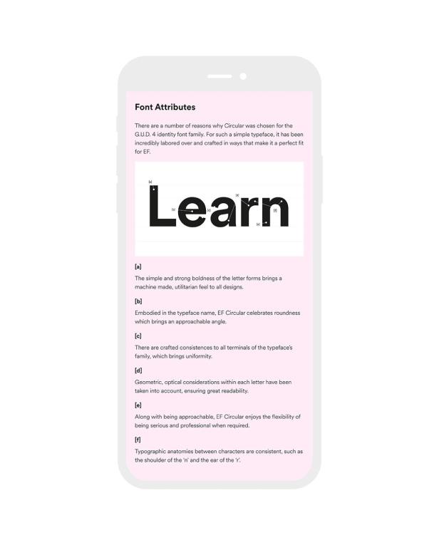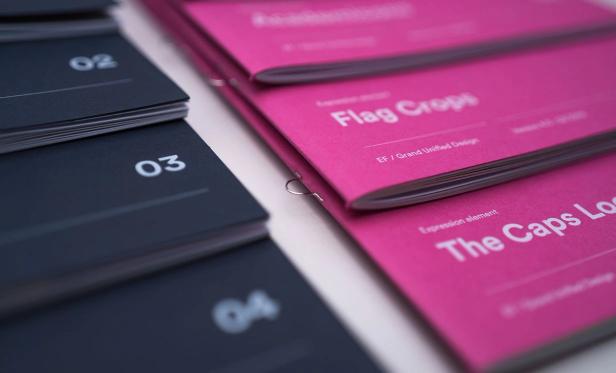 Every identity guide I produce only ever seems to exist in PDF format. Version 1, version 2… and so on. But the G.U.D. 4 is different. We wanted to commit the guide to a printed format to communicate it’s ideas in the format itself, inspire the creative community within EF and establish a sense of authority. The guide is made up of individual booklets that can easily be swapped out as the visual language evolves over time, in a format that allows for new additions too.