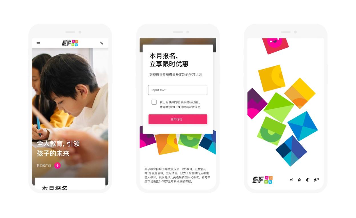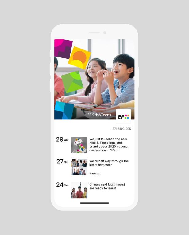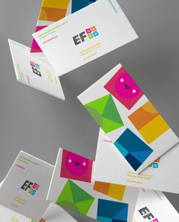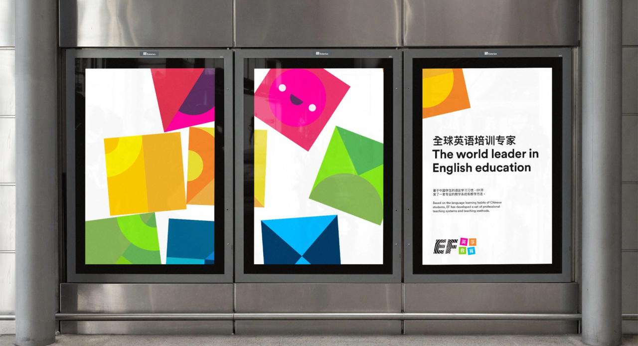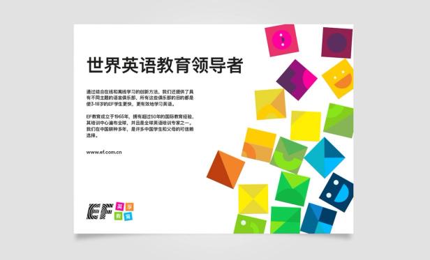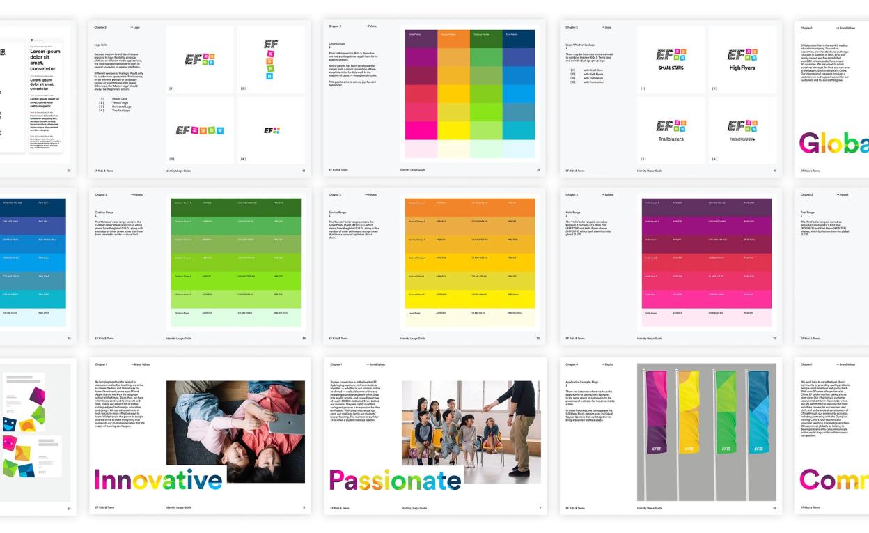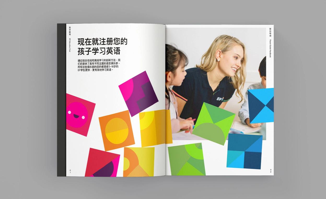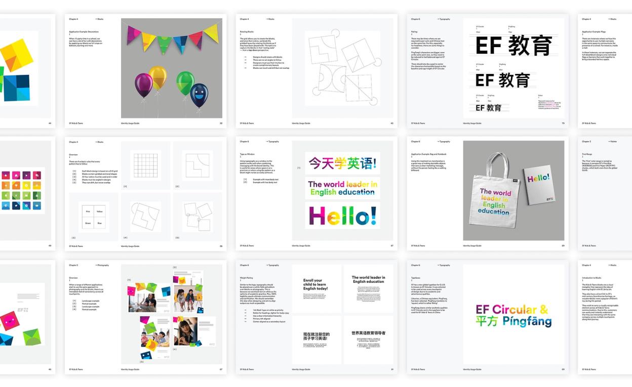 The brand identity reflects this idea of building a future that combines a desire to learn with an appreciation of playing. It is bold, bright, modern and flexible. EF’s international platform is a big draw for parents across China, Russia and Indonesia. We were inspired by mid-20th-century Scandinavian wooden toys for the main graphic device for the brand: the building block. This graphic hints to our European heritage.