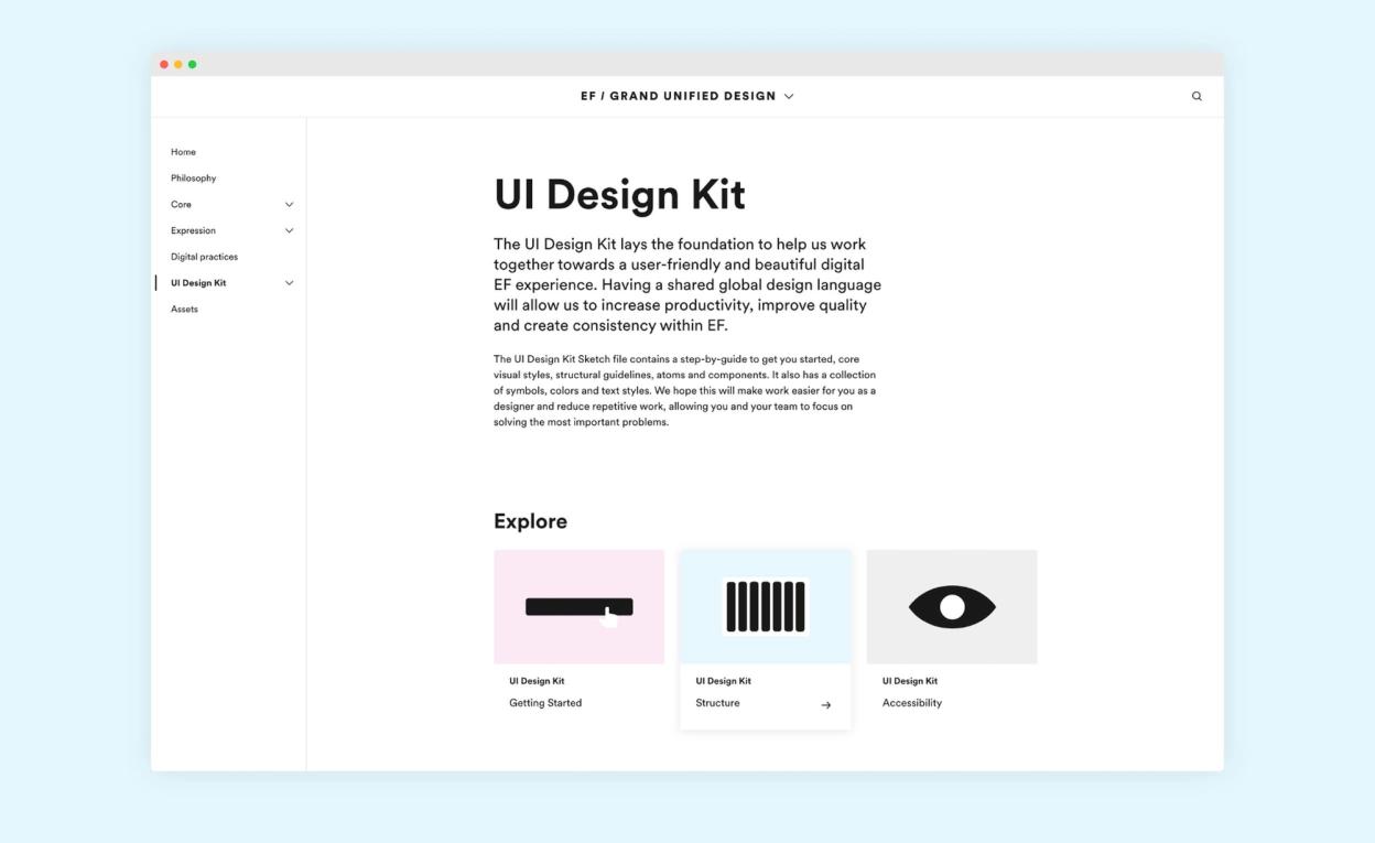 The UI Design Kit lays the foundation to help designers within EF work together towards a user-friendly and beautiful digital EF experience. Having a shared global design language allows us to increase productivity, improve quality and create consistency within EF.