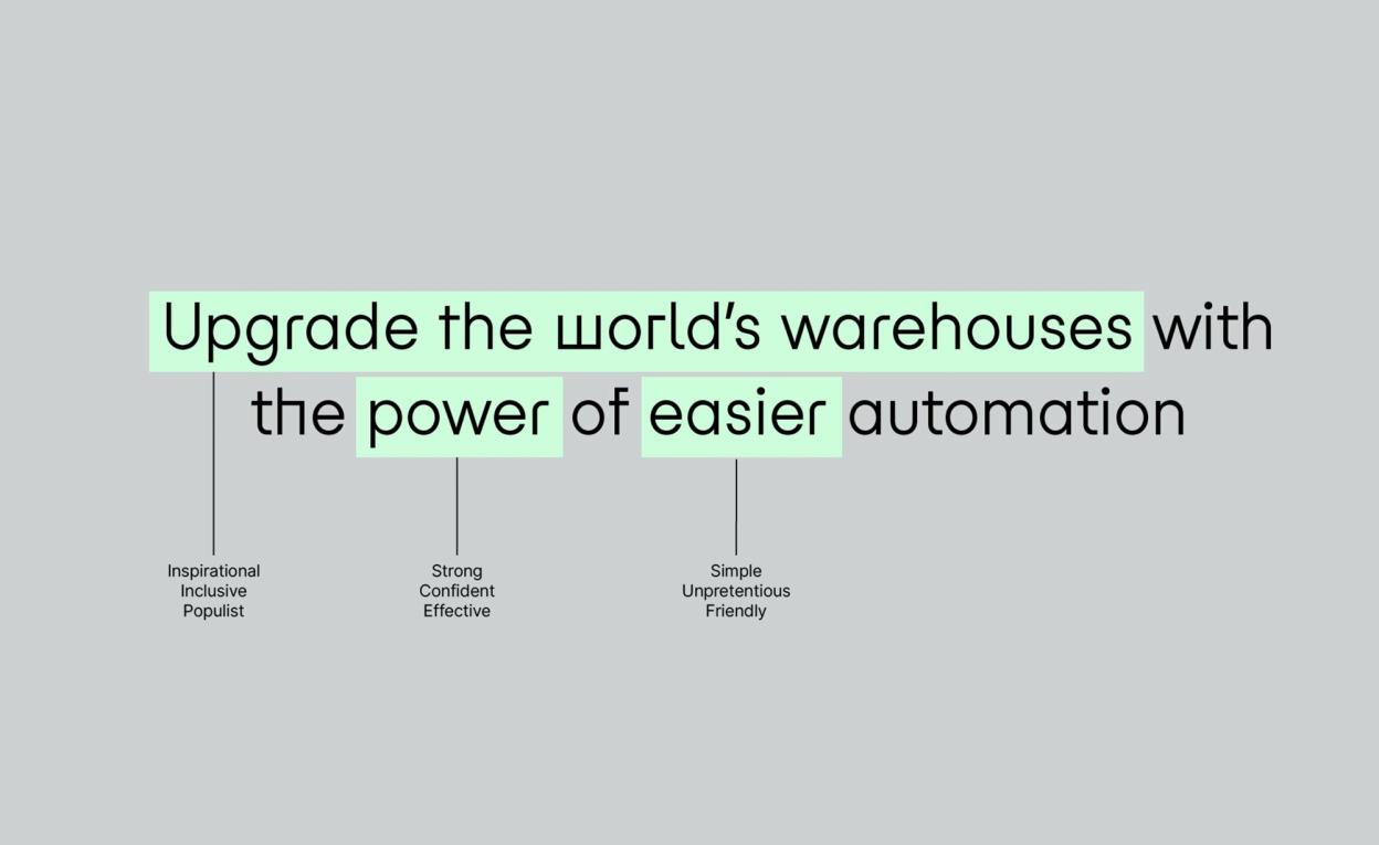 The visual world of warehouse robotics, ironically, is considerably static, expectedly dry and incredibly corporate. Our job was to channel the strategic framework of the what, why and market advantages into a tangible design system that differentiates from category norms. The topic of automation is a key moment in that purpose statement, and coupled with a literal interpretation of their product and how it works in a warehouse scenario, we developed a kit of parts born out of the truth of modularity and movement.