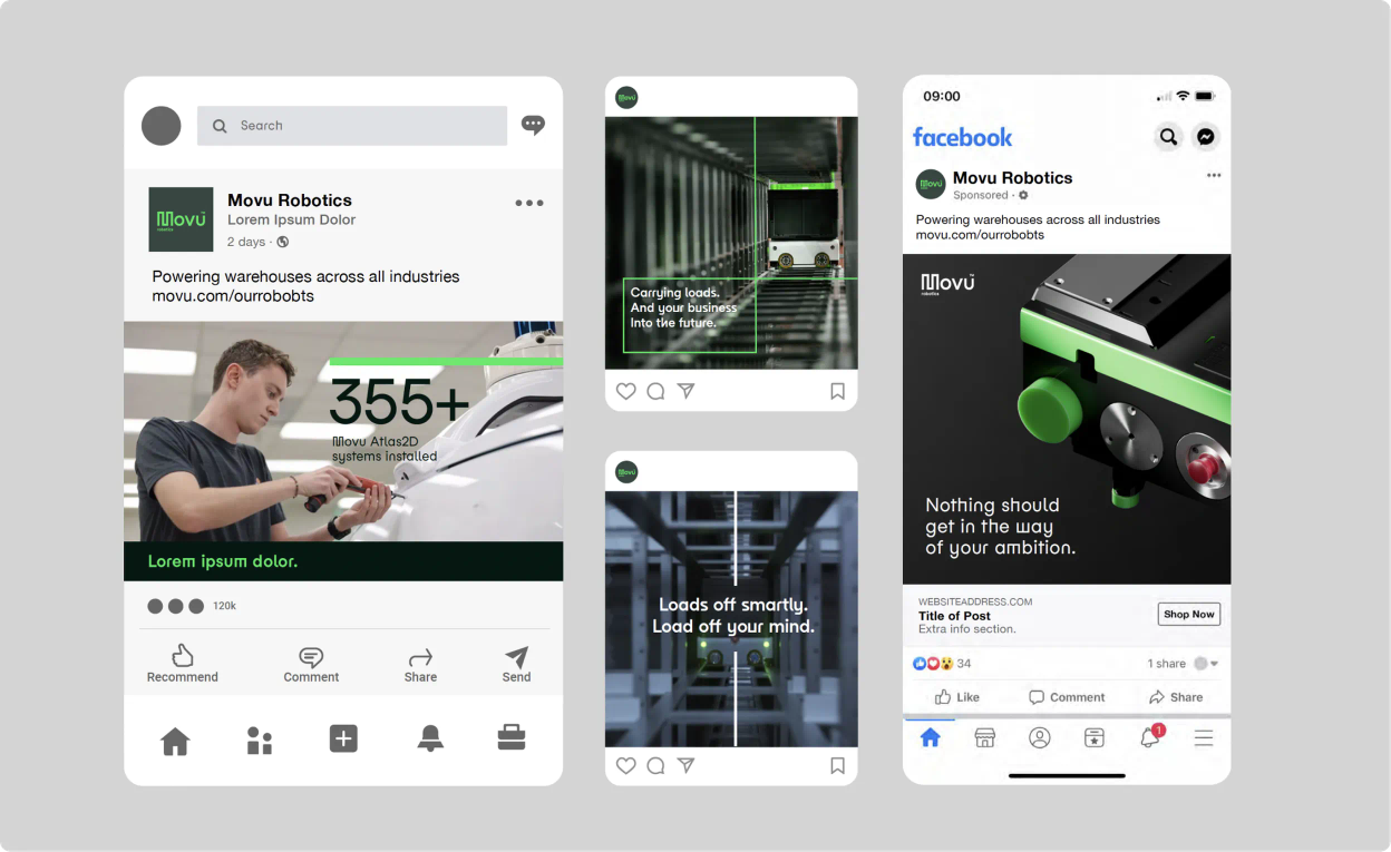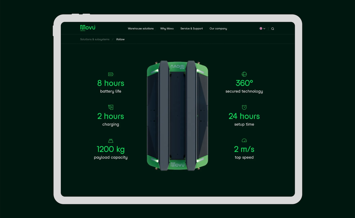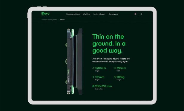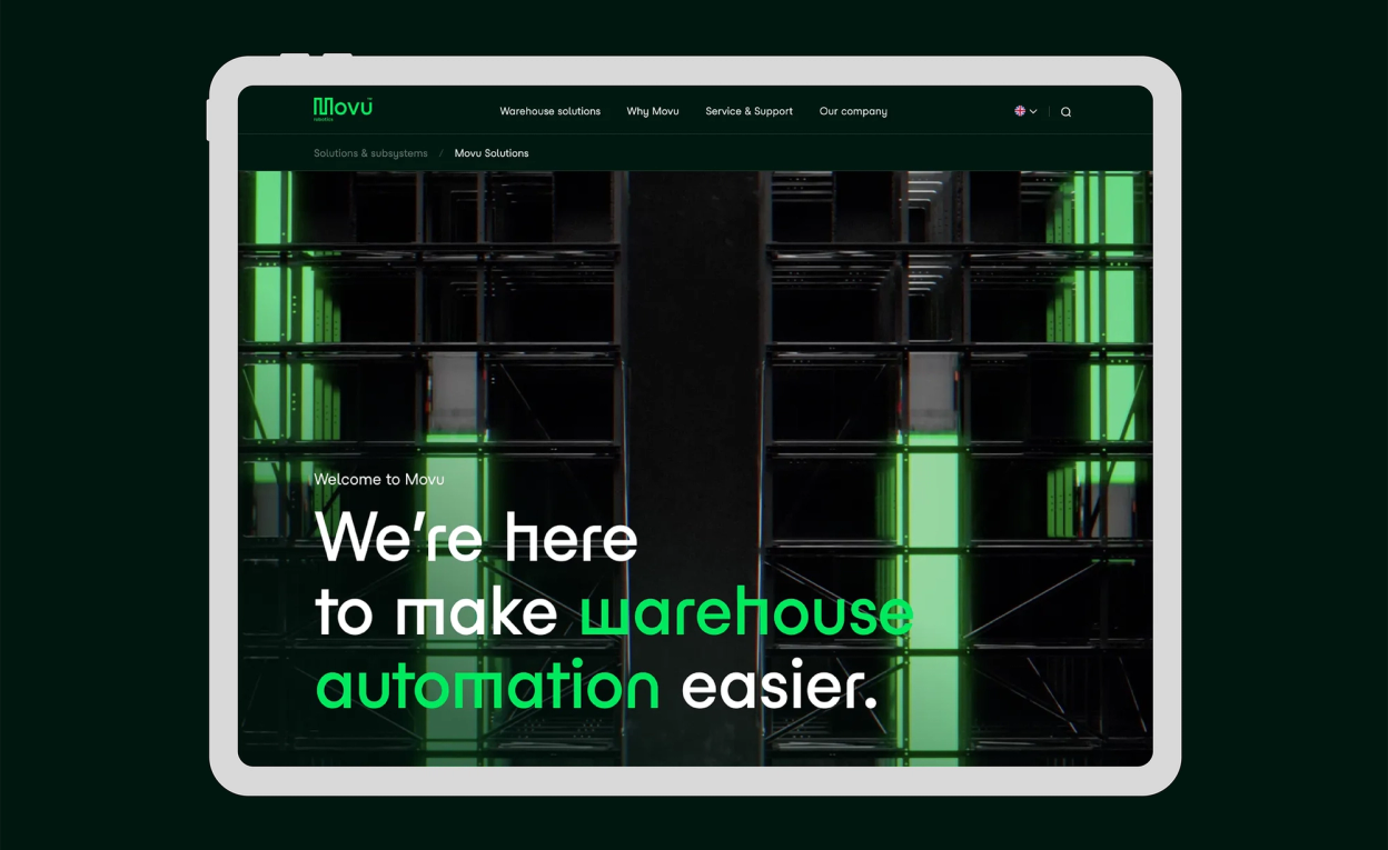 We created a master film to tell the Movu story and to introduce the new brand, as well as several product films to showcase each of their autonomous robots. The film acted as the jewel in the crown of how the new brand was announced, featuring a track of classical music that emphasised the dance of the robots in the warehouse, adding emotion to an otherwise cold sector. The contrast was striking, the final output wreaking of quality.