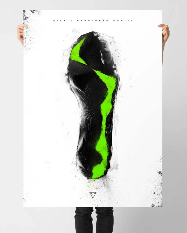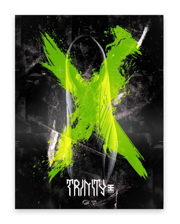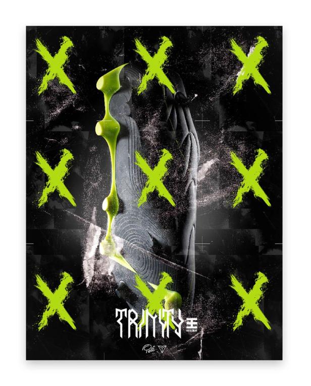 There was a need for a clear link back to the master Pelé Sports brand identity, which at the time was in a constant state of development as we looked to establish the approach. We knew that by leaning into the modernity of the boot combined with the heritage of Pelé himself would yield interesting results—so we took a similar approach for the Trinity 3E design direction.