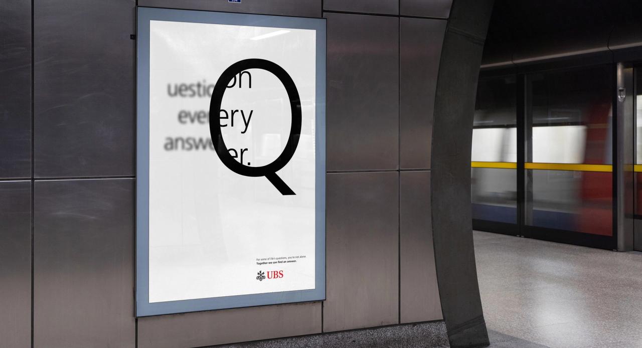 The whole UBS visual identity revolves around minimalism, refinement and elegance. Developed most recently by Wunderman Thompson in London, the strict constraints of colour and monotone imagery created a small sandbox where core graphic design concepts could come to life to communicate these brand values in clever, and sometimes location-specific, executions.